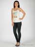 Трикотажный топ прямого кроя на тонких лямках. На передней полочке набивной рисунок со стразами.