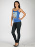 Трикотажный топ прямого кроя на тонких лямках. На передней полочке набивной рисунок со стразами.