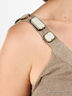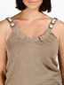 Топ оригинального дизайна из светло-коричневого джерси. V-образный вырез. Бретельки декорированы крупными бусинами. Верх спинки посажен на широкую резинку.