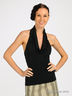 Приталенный топ из эластичного, лоснящегося материала. Воротник хамут. Открытая спина. Спинка посажена на кулиску.