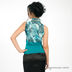 Отрезной женский топ. Верхняя часть выполнена из легкого шелковистого материала, нижняя трикотажная. Воротник хамут. Без рукавов.