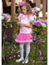 Нарядный топ прямого силуэта из тонкой атласной ткани. Округлый вырез горловины декорирован цветами, короткий рукав-фонарик.
