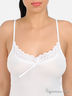 Детали: v-образный вырез горловины, тонкие, регулируемые по длине бретели. Изделие декорировано кружевной тесьмой и атласной лентой