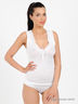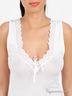 Детали: v-образный вырез горловины, широкие бретели. Изделие декорировано кружевной тесьмой и атласным бантом