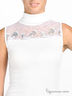 Топ из трикотажа в рубчик. Воротник хамут. Кокетка выполнена из легкого нежного кружева, украшенного пайетками.