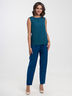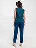 Топ прямого силуэта выполнен из плательной ткани. Нагрудные вытачки по переду обеспечивают комфортную посадку. Округлый вырез горловины и проймы обработаны цельнокроенной обтачкой.