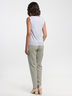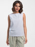 Топ прямого силуэта выполнен из плательной ткани. Нагрудные вытачки по переду обеспечивают комфортную посадку. Округлый вырез горловины и проймы обработаны цельнокроенной обтачкой.