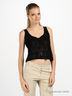 Нет более изысканного и женственного материала, чем кружево! Волнующее, полупрозрачное, но элегантное - выбор настоящей женщины. Короткий приталенный топ из черного ажурного кружева. Глубокая круглая горловина. Особая изюминка модели - черный атласный цветок на груди.