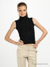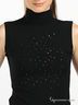 Трикотажный топ из удивительно нежного, приятного на ощупь материала, который прекрасно поддерживает форму. Воротник стойка. Без рукавов Полочка украшена россыпью разноцветных страз, что придает этой модели особое очарование.