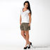 Топ женский белого цвета, прилегающий по фигуре силуэт. На полочке декоративная вышивка и металлические клепки.
