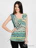 Стильный топ прямого силуэта с двойным вырезом горловины и лямками выполнен из эластичного вискозного трикотажа. Отрезной лиф с пришитыми шлевками. Сборки по боковым швам с кулисками. Будьте в центре внимания каждый день.