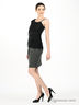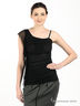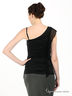 Оригинальный топ из фактурного трикотажа в полупрозрачную полоску. Одна широкая бретелька, другая тонка регулируемая. Топ декорирован полупрозрачной оборкой.
