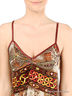 Детали: топ на тонких лямках, изделие выполнено в яркой летней расцветке, декорировано пайетками, художественной вышивкой, на спинке лиф посажен на резинку.