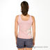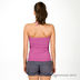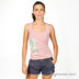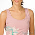 Комплект топов. Топ, завязывающийся на шее, однотонный, ворот окантован декоративной лентой, внизу цветной принт. Второй топ однотонный без рукавов с ярким принтом.