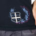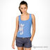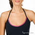 Комплект топов. Топ, завязывающийся на шее, однотонный, ворот окантован декоративной лентой, внизу цветной принт. Второй топ однотонный без рукавов с ярким принтом.