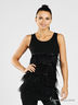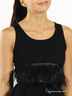 Стильный топ добавит в Ваш гардероб оригинальности и праздничного настроения. Прямого кроя. Плотная низкоэластичная ткань. Округлый вырез горловины и проймы дополнены трикотажной лентой. Полочка декорирована атласными лентами с перьями.