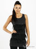 Стильный топ добавит в Ваш гардероб оригинальности и праздничного настроения. Прямого кроя. Плотная низкоэластичная ткань. Округлый вырез горловины и проймы дополнены трикотажной лентой. Полочка декорирована атласными лентами с перьями.