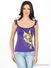 Детали: топ на узких лямках декорированных рюшами, по спинке оригинальная вышивка, отделка - авторский принт, рисунок - бабочка.