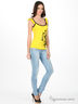 Детали: топ на узких лямках декорированных рюшами, по спинке оригинальная вышивка, отделка - авторский принт, рисунок - бабочка.