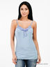 Повседневный топ приталенного силуэта. На тонких кружевных эластичных бретельках. Спереди модель украшена бантиком.