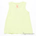 Детали: округлый вырез горловины, лямки, застежка на две кнопки на левом плечике, полочка и спинка украшены аппликациями, сборка на полочке