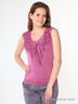 Детали: круглый вырез, без рукавов, полочка украшена многослойными рюшами