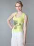 Детали: округлый вырез горловины, широкие бретели, полочка декорирована оригинальным набивным рисунком