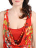 Детали: эффект двойки; оригинальный принт; декорирован пайетками и бисером; низ изделия дополнен трикотажной лентой; съемное ожерелье