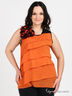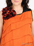 Детали: круглый вырез, без рукавов, сзади застегивается на пуговицу, полочка украшена декоративным цветком и многослойными рюшами
