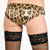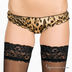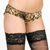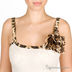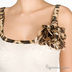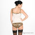 Стильный и удобный комплект: топ и трусы. Трикотажный топ на тонких бретелях из контрастного материала с принтом, имитирующим леопарда. Топ имеет круглый вырез горловины и украшен цветком-брошью в тон отделки горловины и бретелей. Трусы выполнены из атласного материала с принтом, имитирующим леопарда, и присборены на резинку, образую аккуратные рюши, что делают трусы более кокетливыми.