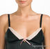 Элегантный и сексуальный топ из приятного на ощупь, эластичного атласа. Регулируемые бретельки. Мягкие чашечки с диагональным швом. Декоративные сборки на чашечках сделают Вашу грудь пышней. На спинке вырез-капелька, застегивается на крючки. Топ декорирован нежными ажурными оборками.