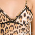 Элегантный топ с принтом, имитирующим леопарда, на тонких регулируемых бретелях с V-образным вырезом горловины. Топ украшен ажурной тесьмой по линии горловины и линии талии. На спине фирменный логотип.