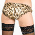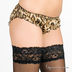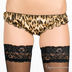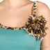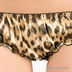 Стильный и удобный комплект: топ и трусы. Трикотажный топ на тонких бретелях из контрастного материала с принтом, имитирующим леопарда. Топ имеет круглый вырез горловины и украшен цветком-брошью в тон отделки горловины и бретелей. Трусы выполнены из атласного материала с принтом, имитирующим леопарда, и присборены на резинку, образую аккуратные рюши, что делают трусы более кокетливыми.