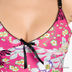 Элегантный топ на тонких регулируемых бретелях. У топа V-образным вырез горловины, украшенный спереди бантиком из атласной ленты. Яркий цветочный принт имеет эффект батика. На спине фирменный логотип.