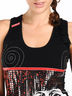 Оригинальный трикотажный топ с ярким принтом. Круглая горловина. Декорирован бархатной полоской и серебристой вышивкой.