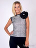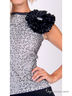 Стильный топ с короткими рукавами и округлым вырезом горловины. Модель выполнена из качественного материала привлекательной расцветки. Спереди изделие украшено декоративным элементом.