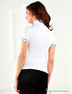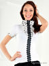 Оригинальный трикотажный вискозный топ с отделкой из шелка и кружева. Модель с короткими рукавами и воротником-стойкой. Отличный вариант на каждый день.