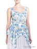 Оригинальный топ с округлым вырезом горловины и лямками. Талия подчеркнута пояском. Ассиметричный низ изделия в складку. Изделие украшено рисунками. Будьте стильной и женственной.