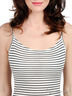 Детали: округлый вырез горловины, тонкие лямки, контрастные полоски