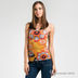 Топ прямого кроя из низкотрикотажной ткани. Частично просвечивает. Глубокий круглый вырез горловины, спинка "борцовка". Проймы и горловина окантованы двойным необработанным краем.