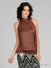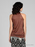 Легкий трикотажный топ. Без рукавов. Воротник-стойка, завязывается в бант. Свободный силуэт. Низ изделия посажен на трикотажную резинку и присборен по шву.