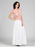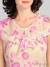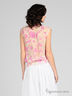 Топ из легкого, полупрозрачного шифона. Без рукавов. Округлый вырез горловины с небольшой сборкой ткани. Полочка декорирована рюшами. Низ изделия посажен на многорядную резинку.