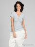Топ трикотажный. Короткий рукав. V-образный вырез. Оригинально скроенная полочка - переплетение тканей образует бант с декоративными складками.