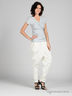 Топ трикотажный. Короткий рукав. V-образный вырез. Оригинально скроенная полочка - переплетение тканей образует бант с декоративными складками.