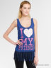Стильный топ на широких бретелях. Модель выполнена из качественного материала привлекательной расцветки. Изделие декорировано бахромой по низу и принтом спереди. Отличный вариант на каждый день.