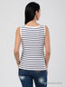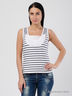 Топ в полоску из трикотажа в рубчик 1x1, деталь из ткани спереди + ложная планка с пуговицами. Боковые разрезы 6 см для разм. 50-52
