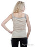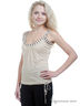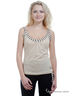 Однотонный топ с отделкой кантом в разноцветную полоску, бретели шириной 2 см, сборки под вырезом, кулиска по низу изделия. Боковые разрезы 6 см для разм.50-52.