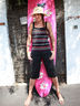 Разноцветный топ в рубчик 1x1, широкие бретели. Боковые разрезы 6 см для разм. 50-52