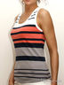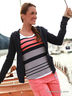 Трехцветный топ в рубчик 1х1, в широкую полоску, закругленный низ. Боковые разрезы 6 см для размер. 50-52