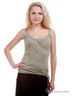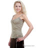 Однотонный топ с отделкой кантом в разноцветную полоску, бретели шириной 2 см, сборки под вырезом, кулиска по низу изделия. Боковые разрезы 6 см для разм.50-52.